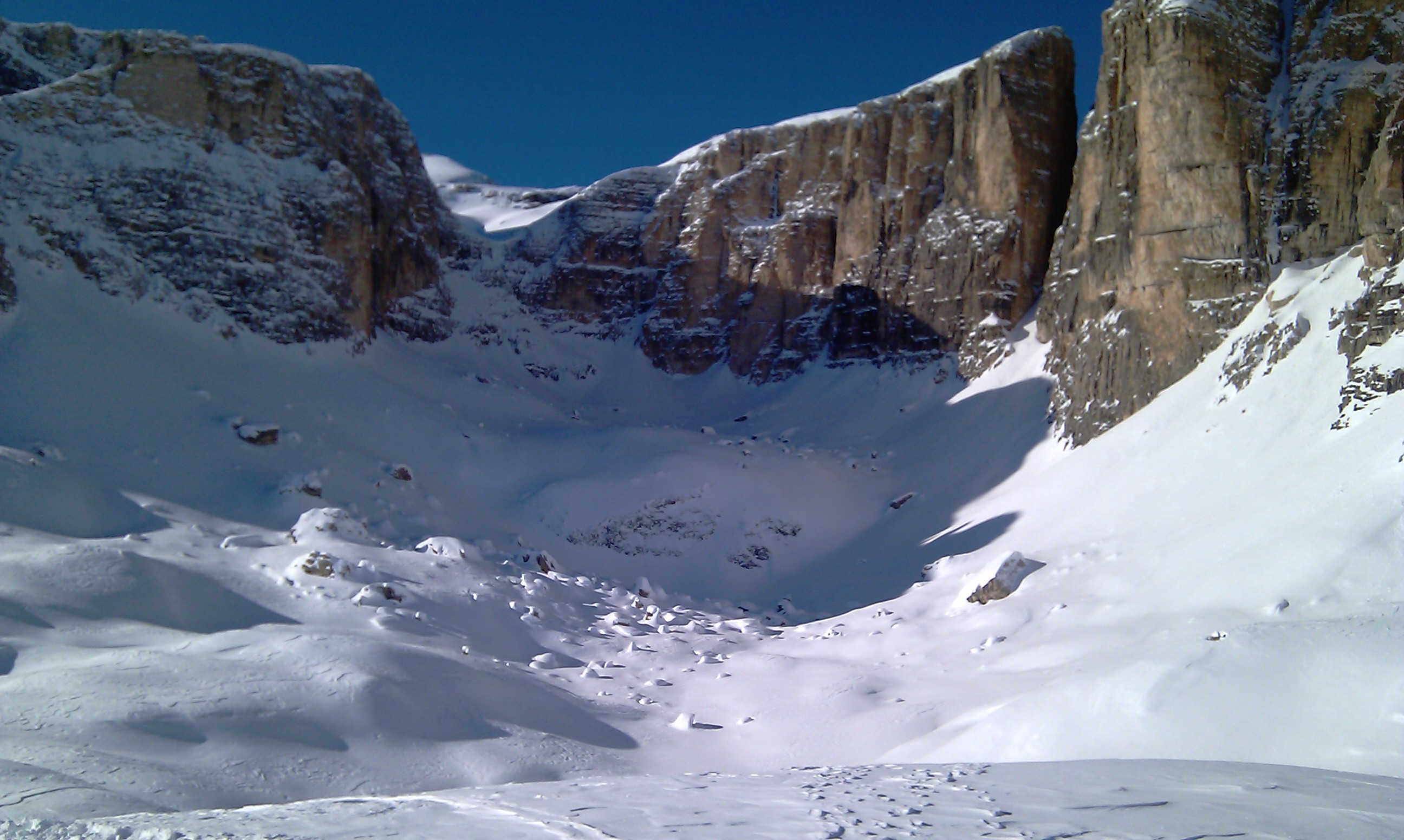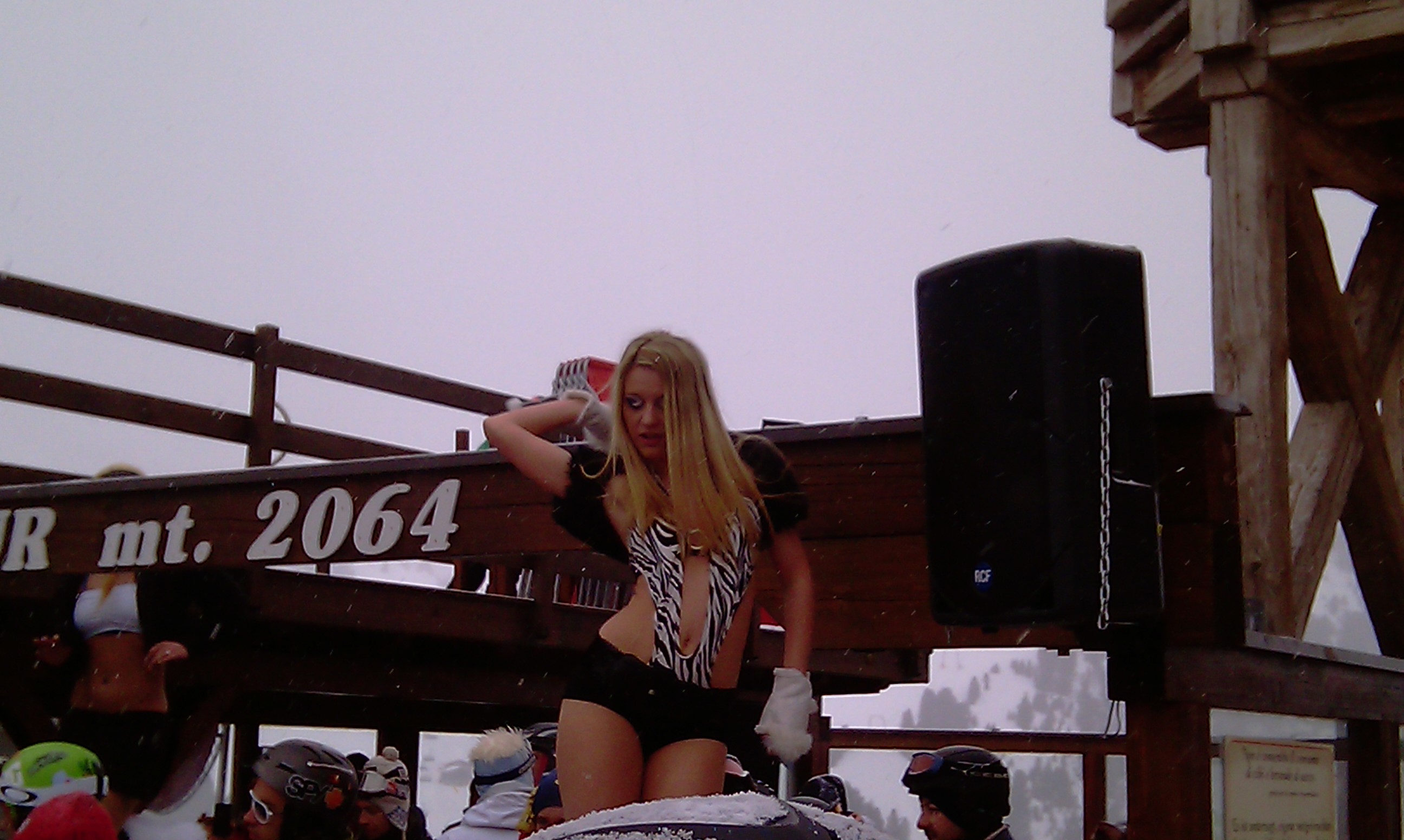 III dzień: pogoda nie italska. Zimno, pochmurno, mało ciekawie, ale że grupa się rozjeździła, no to z grubej berty, czyli pomarańczowa Sella Ronda: Alta Biadia, przez Arabbę, Porta Vescowo do Val di Vassa, Lupo Bianco a potem do Selvy Gardeny. W trakcie nartowania udział w krótkiej imprezce stricte narciarskiej, czyli pokaz wytrzymałości kobiecej w zderzeniu z naturą.